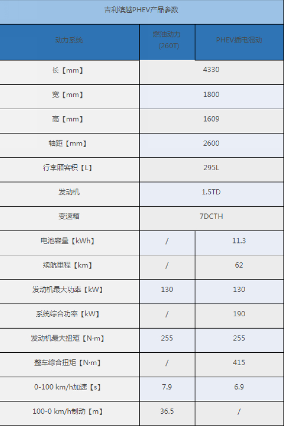 在动力系统方面,缤越PHEV搭载1.5TD发动机+7DCTH高效智擎,百公里加速可以达到6.9秒。这1.5TD发动机+7DCTH变速箱+三元锂电池的混动系统,综合最大功率达190kW,综合最大扭矩415N·m,在数据表现上优于目前市面上的主流2.0T高功率车型。