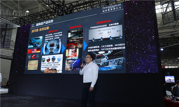 福田戴姆勒汽车营销公司鄂赣分公司区域客户开发总监张渊博进行国典版产品讲解