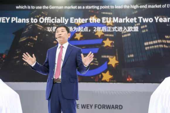 “汽车的百年历史中,德国是汽车制造的高地,日本是经济类汽车的大国;现在我们赶上了第四次工业革命的浪潮,而中国在5G、AI、互联网、新能源方面的科技创新,走在了世界的前面,这带给中国汽车一个弯道超车的重要机会。手机、家电、互联网已经全球领先的中国企业,证明中国汽车也有可能实现市场领先“魏建军表示,“为了抓住这样的历史机遇,WEY提前在电动化、智能化、网联化以及氢燃料等方面大力投入,实现了大量的技术储备,掌握了这些领域的核心技术。WEY在德国了建立技术中心,就是要以德国市场为起点,率先进军欧美这些高端市场。我们计划,两年后,正式全面进入欧盟市场。”