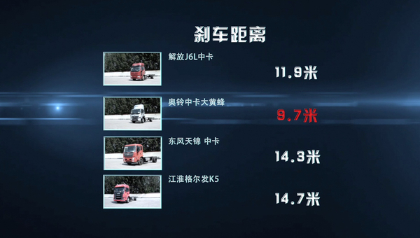 国内主流中卡刹车距离对比结果 奥铃中卡大黄蜂刹车距离最短