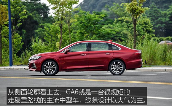 侧面来看,全新GA6的车身规整,C柱和车顶并没有跟风采用时下流行的类溜背式设计,看起来更加稳重协调,同时后排乘客的头部空间也将得到保证。尺寸方面,新车长宽高为4891/1850/1505mm,轴距为2815mm,全面超越现款车型。