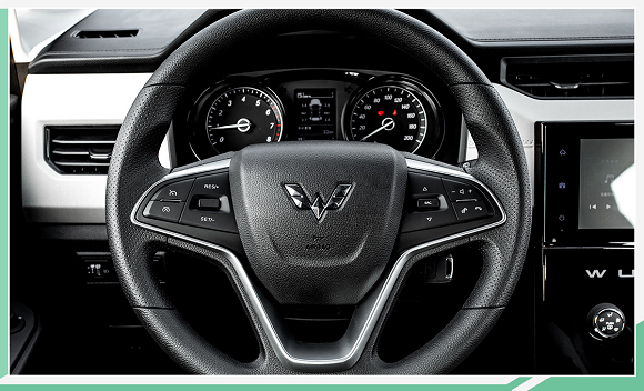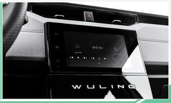 五菱宏光PLUS配备8寸大屏中控面板,并与下方空调控制面板采用一体化设计,中间“WULING”字样的设计,搭配“高亮黑”的玻璃质感的材料,提升了整个中控内饰的质感。同时,悬浮式空调出风口与双炮筒仪表平行,多功能浮动式方向盘采用平底运动风格设计,仪表板搭配大面积激光雕刻仿布纹面料,防刮耐磨。