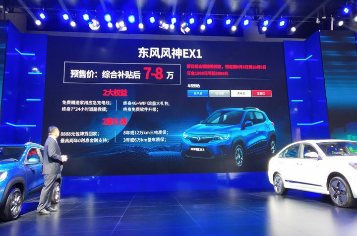 东风风神EX1将搭载一台最大功率33kW的电动机,NEDC续航271km。