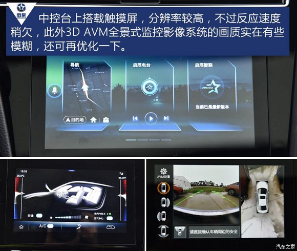 该车内饰整体以黑色为主,只在方向盘车门饰板、中控台等处加入了镀铬元素进行点缀,起到画龙点睛的作用。设计上偏向驾驶位的中控台设计会让驾驶者感觉很友好,操作一些触控屏也更方便一些。配置上该车搭载了最新的启辰智联系统3.0,除了能够满足基本的娱乐功能、导航功能之外,还有科大飞讯AI语音助手,通过“你好,启辰”就可以唤醒,方便操作,高配车型还拥有无盲区3D AVM全景式监控影像系统。