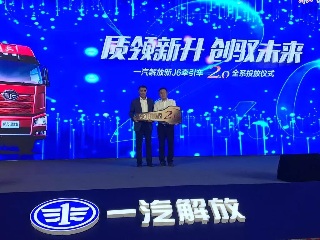 随后,现场举行了隆重的启动仪式,解放领导与在场嘉宾共同见证了“一汽解放新J6牵引车2.0全系投放”的荣耀时刻。“解放新J6牵引车2.0”体现了一汽解放“追求卓越,勇于创新”的精神,也正是因为秉承这样的信念,一汽解放实现了中国重卡技术与产品品质的不断创新。