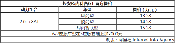 科赛GT是长安欧尚旗下一款中型SUV,基于普通版车型打造。9月15日,网通社从长安欧尚官方获悉,科赛GT正式上市,共推出3款配置车型,提供5/6/7座可选,售价区间为13.28-15.28万元。新车外观加入全新运动套件,并采用黑色涂装的“星辰式格栅”,气势十足极具视觉冲击力。动力方面,搭载全新2.0T涡轮增压发动机。