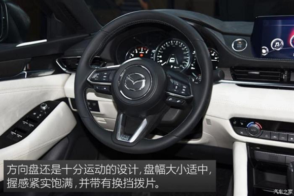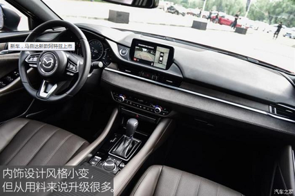 进入车内可以看到新款阿特兹采用了全新的内饰设计方案,整体的设计感足以让人有耳目一新的感觉。整体的内饰设计风格比较突出简洁和层次感,而在用料方面,大量的皮质以及软性材料的运用也提升了车内的档次感。车内配置方面,带有液晶显示的仪表盘、悬浮式的中控屏和现款车型上就有配备的拨片换挡等配置在新车上皆有出现,新车的配置也不低,凸显出了不错的性价比。