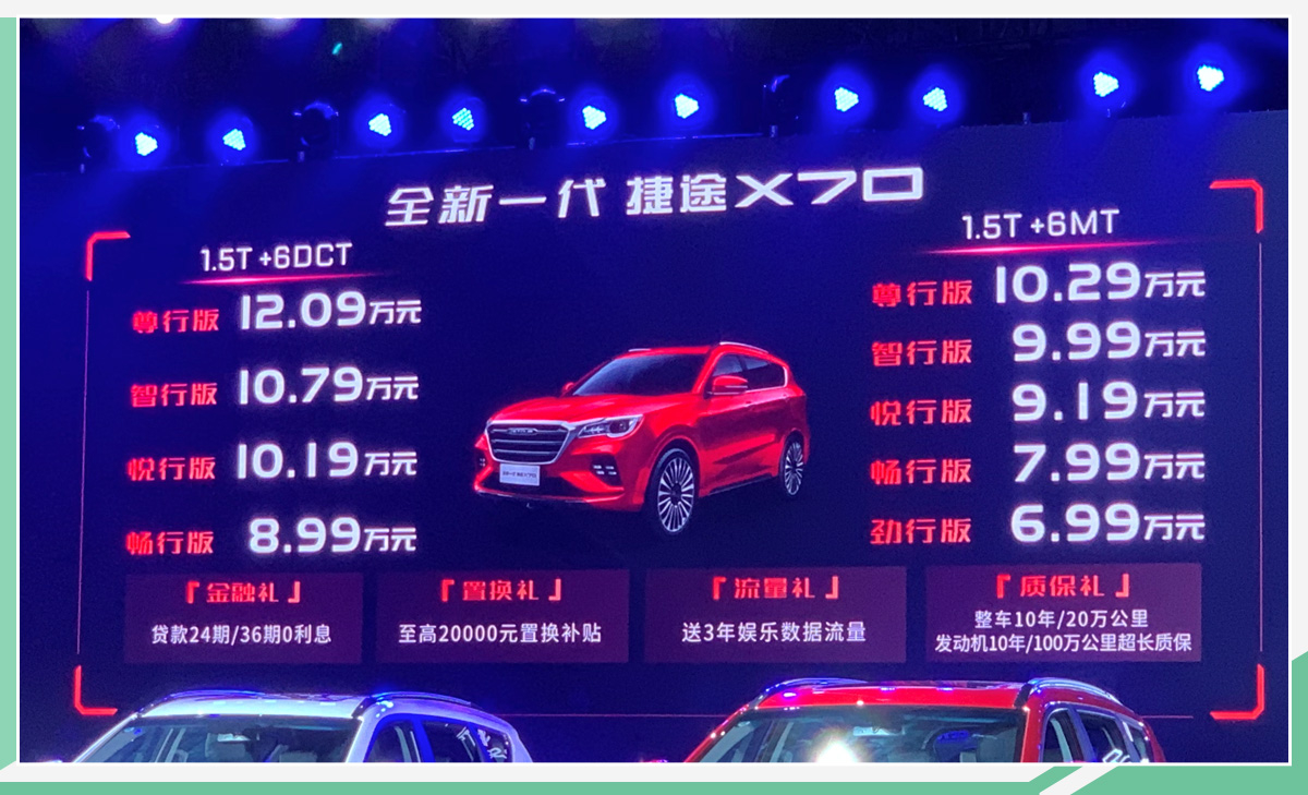 换新前脸/动力升级 新款捷途X70售6.99万元起