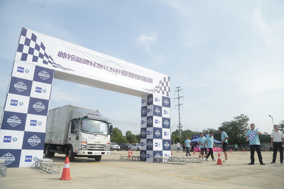 在极智体验营节油挑战赛中,帅铃轻卡与两款市场同类车型展开现场PK,在全程空调制冷状态,经过S弯道、颠簸路面、直线加速、紧急制动环节,60公里城郊道路,25 个红绿灯的综合工况下,比赛全程时长 80 分钟,比赛结束计算各车油耗,最终帅铃全能城配版以11.7升/百公里的油耗成绩夺冠,百公里油耗比市场同类车型低1升。
