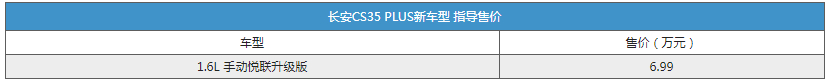 日前我们从长安汽车官网获悉,长安CS35 PLUS(参数|询价)新增一款1.6L手动悦联升级版车型,售价6.99万元。新车替代了原有的1.6L手动悦联版,在售价不变的基础上,针对配置进行了提升。