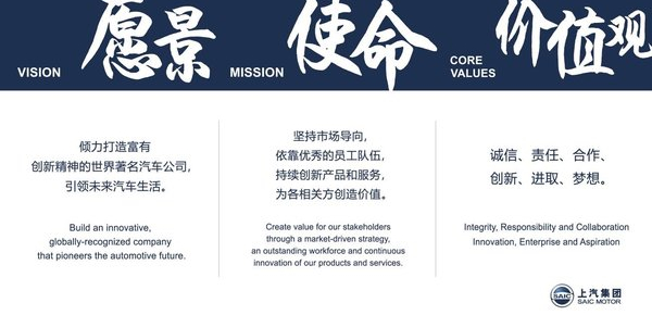 2015年,上汽集团发布全新的愿景、使命、价值观。
