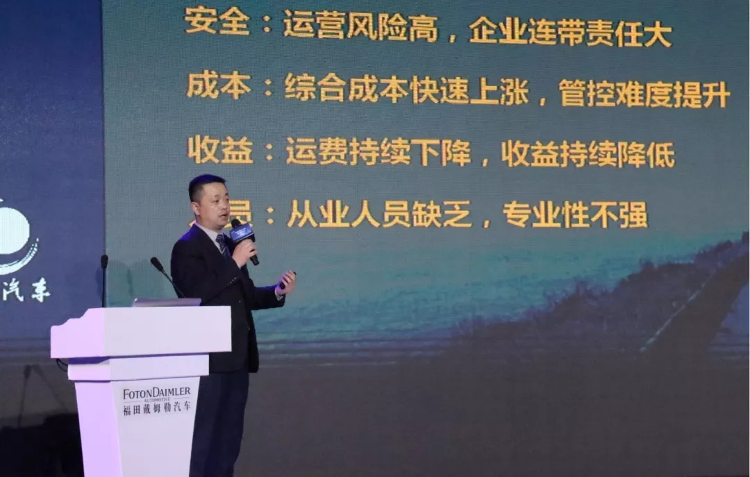 福田戴姆勒汽车危化品行业总监陈光介绍欧曼超级重卡安全之星法规版智能列车