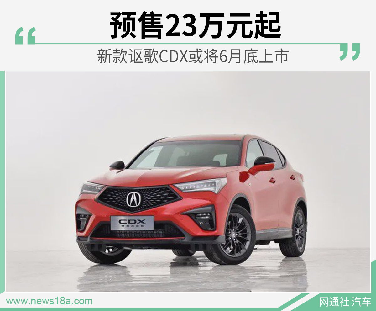 近日,网通社获悉,新款讴歌CDX有望6月底上市发售。作为中期改款车型,新款讴歌CDX除了新增A-Spec运动款车型外,还拥有独特的“挚热焰红”全新外观颜色,配置部分也进行了相应的升级,此前官方公布的预售价格为23万元起。