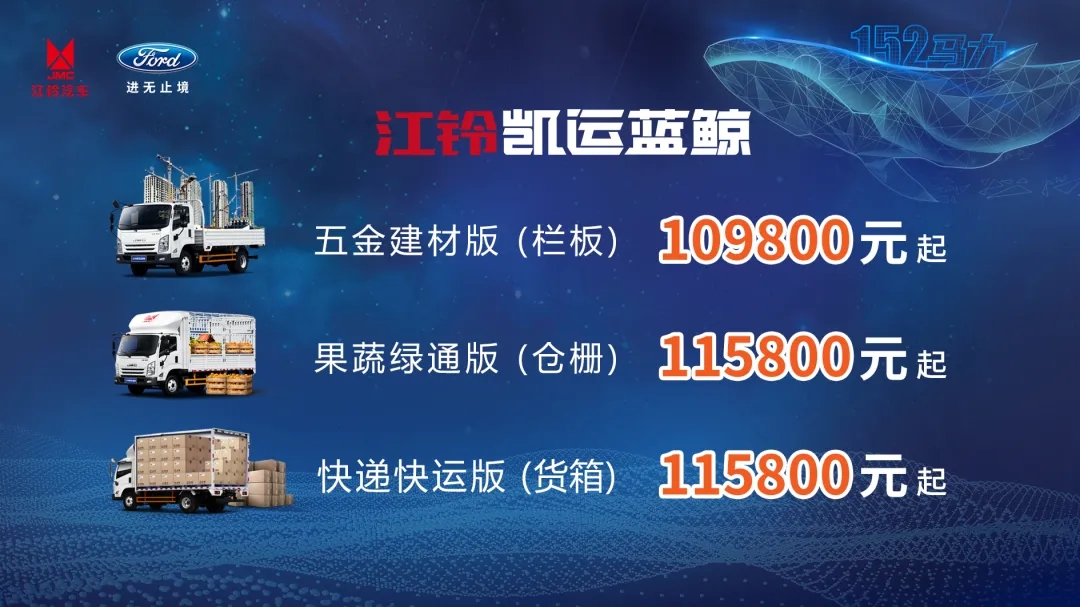 大动力,大蓝牌,江铃凯运蓝鲸上市即热销,当日订单突破千台。可以预见,在不久的将来,凯运蓝鲸必将成为更多个体户、物流运输人员、企业用户的心仪之选,成就高效物流时代的标杆。