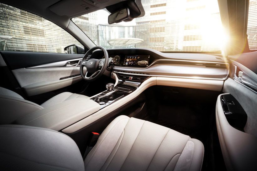 内饰中,广汽传祺GA8在视觉和触觉方面都拥有不错的豪华感,并提供多种配色方案可选。材料的选择上,车内大部分覆盖件为软性材料,中控台部分搭配木纹以及金属拉丝工艺饰板,中央通道则采用钢琴烤漆材料。