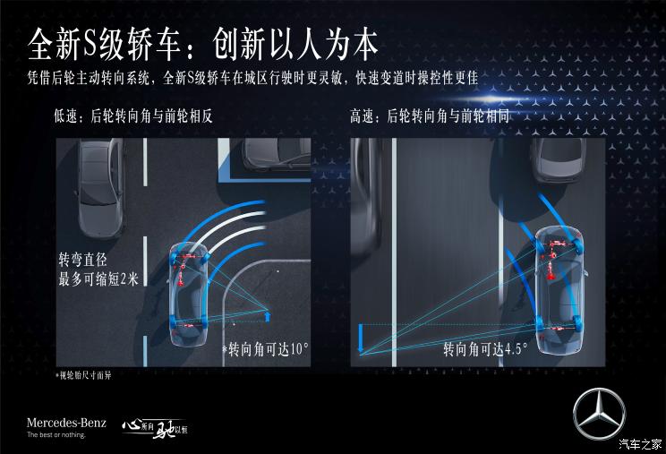 奔驰此次线上发布了全新奔驰S级的诸多“黑科技”,例如智能魔术车身控制系统(借助5个多核处理器、20多个传感器以及立体摄像头对不同的行驶情况作出预先反应)、后轮主动转向系统(最大可达10度)、新一代驾驶辅助组件(包含360全景摄像头以及智能泊车系统等)、预防性侧碰撞保护功能(探测到侧面撞击时抬高车身)与全新设计的车内安全气囊系统。