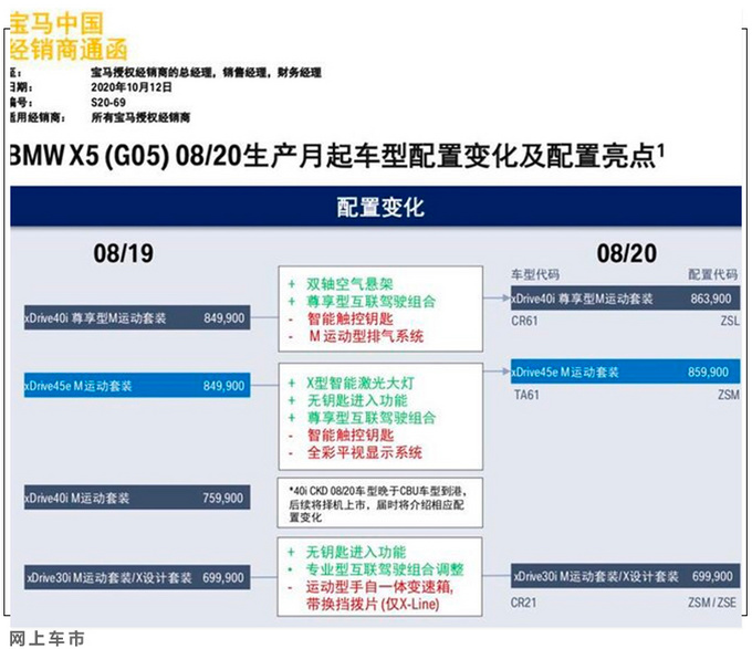 尊享型M运动套装新增双轴空气悬架、尊享型互联驾驶组合,减少智能触控钥匙、M运动型排气系统;xDrive45e