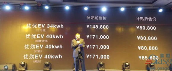 其中,优优EV共推出34kwh(三元锂电池)和40kwh(磷酸铁锂蓄电池)两个车型,售价分别为14.88万元和17.1万元,补贴后售价均为8.08万元;优劲EV售价为17.1万元,并包含了40kwh(栏板)和40kwh(箱货)两款车型,补贴后售价分别为 8.08万元和8.58万元。