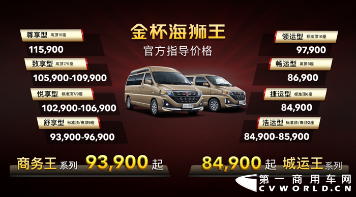 作为本次上市的金杯海狮王,是华晨雷诺金杯得益于雷诺的技术赋能,推出的全新家族系列,以贴近用户实际用车利益点的角度出发,力求打造的“场景王”,更注重商用出行体验,分为城运系列和商务系列,多种车型满足用户多元需求。
