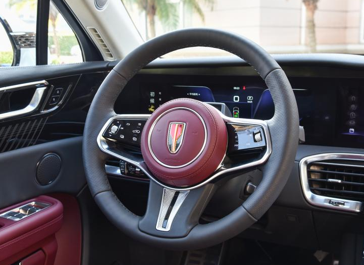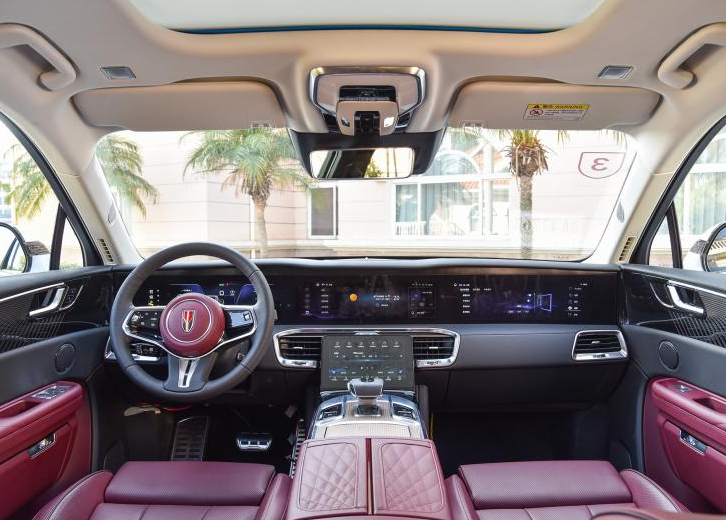 内饰方面,红旗E-HS9采用了全液晶仪表盘加中控多媒体触控屏加副驾驶位眼睛显示屏的三联屏设计,再搭配中控中间的控制面板触摸屏,仅中控台上就拥有四块触摸大屏幕。此外,新车还使用了三辐式的多功能方向盘,方向盘两侧的功能控制按键也为触摸式,再加上电子换挡机构,细节之处更加凸显了新车的未来科技感。