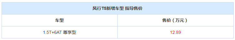售12.89万元 东风风行T5新增车型上市