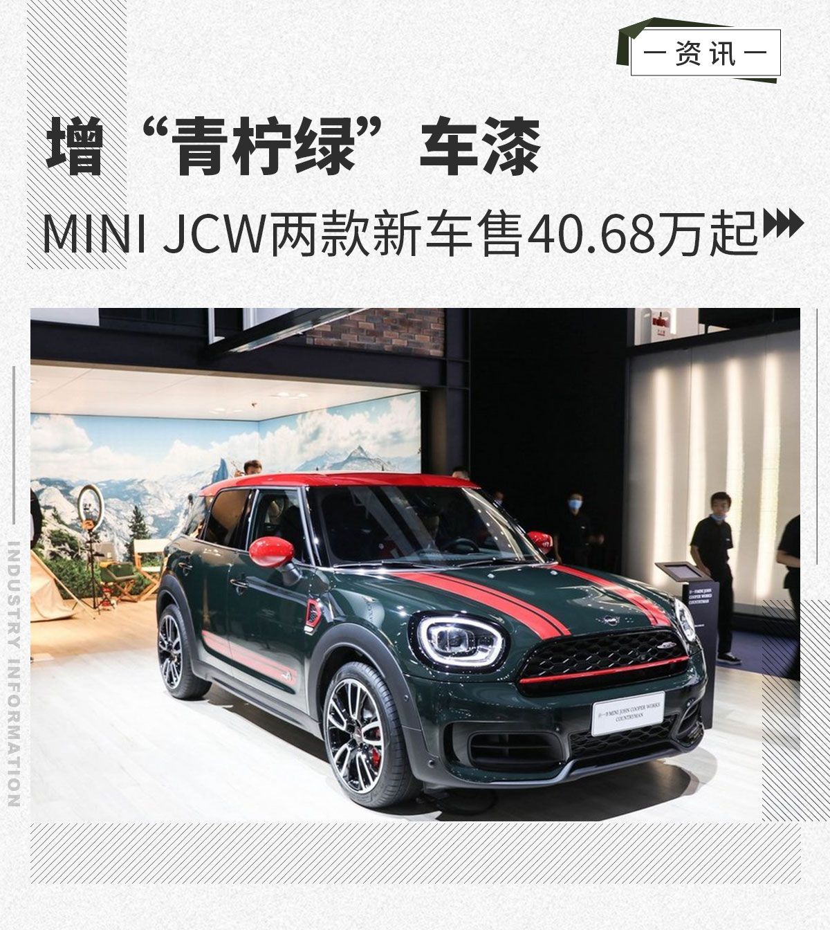 日前,网通社获悉,新款MINI JCW CLUBMAN和MINI JCW COUNTRYMAN正式上市,售价分别为40.68万和42.68万元。作为中期改款车型,两款新车在外观方面进行了一定调整,并增加“青柠绿”车漆颜色。动力方面,新车搭载最大功率200千瓦的2.0T发动机。
