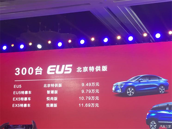 同时,北京汽车还专为北京市民推出300台EU5北京特供版,售价为9.49万元,还可获赠4000度电,并享受2年0息金融优惠、至高20000元置换补贴;还有“双质保”以及首任车主终身免费保养服务。