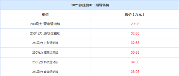 日前我们从官方渠道获悉,2021款捷豹XEL(参数|询价)正式上市,新车除入门版车型之外均采用250马力的2.0T发动机,共有6种配置供消费者选择,官方建议零售价区间为29.98-38.08万元。