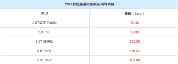 日前,我们从路虎官方获悉,2022款路虎揽胜运动版正式上市。新车包含燃油/插混在内的共5款车型,售价区间为86.48-183.80万元。