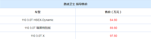 6月12日,路虎宣布2022款卫士110正式上市,新车将推出一种动力共计三款车型,售价区间为84.80-97.80万元。