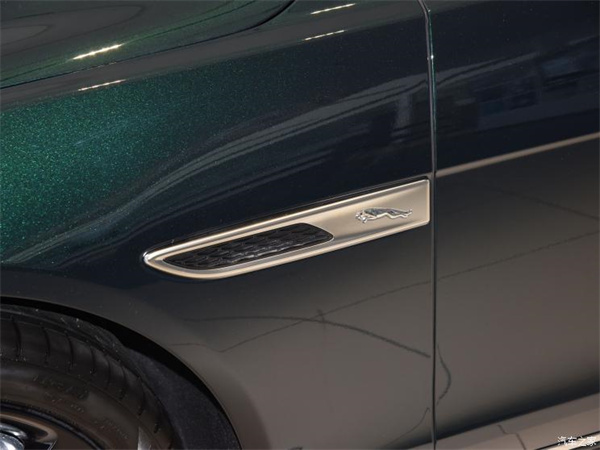 侧面线条并没有变化,加长轴距后新车整体看起来更加修长,全新的侧通风口造型宛如尖刀,装饰由原来的JAGUAR英文更换为全新的跃豹LOGO。同时新车还将提供全新的19英寸黑色轮圈可选。