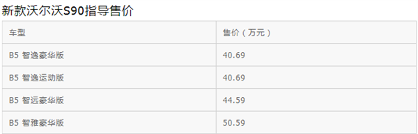 售40.69起,新款沃尔沃S90上市