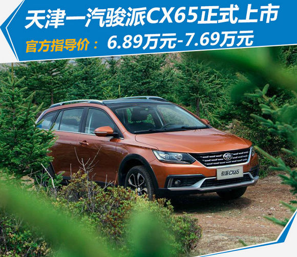 骏派CX65是天津一汽旗下的一款紧凑级跨界旅行车。5月17日,骏派CX65正式上市:官方售价区间为6.89万元-7.69万元,共推出4款车型,均搭载1.5L自然吸气发动机。新车集大众宝来的PQ34平台、意大利公司设计的外观于一身,却比同类别车型大众蔚领便宜五万之多。