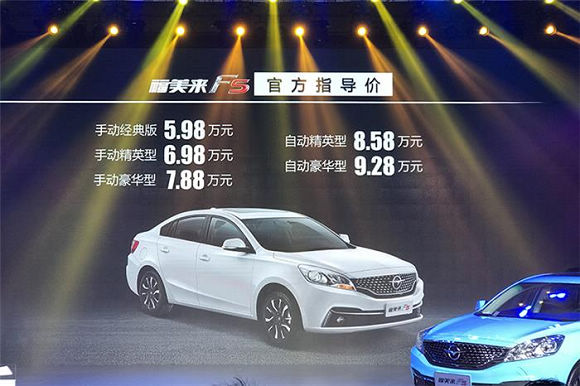 5月23日,一汽海马官方宣布福美来F5正式上市,新车将推出5款车型,售价区间为5.98-9.28万元。福美来是一汽海马旗下紧凑级轿车,新一代产品命名为福美来F5。新车采用最新的设计语言,外形更加动感时尚,配置方面进行了大幅度升级,全系标配电子车身稳定系统、电子手刹、刹车优先、坡道起步辅助等多项安全配置。动力方面,福美来F5将搭载1.6L、1.2T发动机和48V轻混系统。