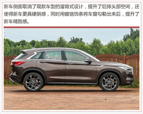 尾部造型上,新车延续了海外版车型的设计,尾门左侧增加了“东风英菲尼迪”标识,车身下方双边共两出的排气布局,提升了整车的运动气息。