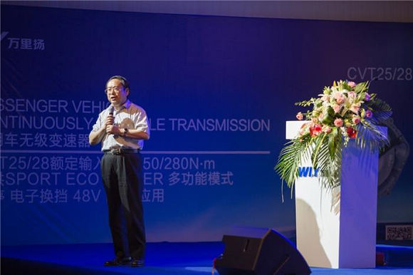李盛其代表齿轮行业协会致辞。他表示,变速器行业正处在前所未有的历史机遇和挑战中,发动机和自动变速器等关键总成核心技术难关取得了重大突破;最宝贵的是国内自主企业拥有了整车各大总成匹配的话语权和自主权,具有市场竞争的产品性价比优势,拥有超大内需市场。这正是国内整车企业和关键零部件企业乘势做强极其难得的战略机遇和有利条件。与此同时,跨国公司加大了在中国的产业布局和产业整合,自主品牌变速器之间的竞争也愈演愈烈,也让自主变速器行业充满了挑战。他认为,CVT25的诞生是万里扬紧抓时代机遇,突破创新的体现。万里扬二十二年来,沉淀了优秀的企业文化,拥有结构合理能打硬仗、勤于思考敢于创新的团队,卓越的批量生产品质保证能力,这些都将助力万里扬成为未来变速器行业的“领跑者”。