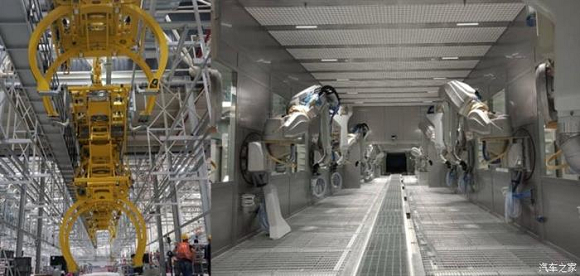 『重庆智能工厂总装车间(左)及涂装车间(右)』