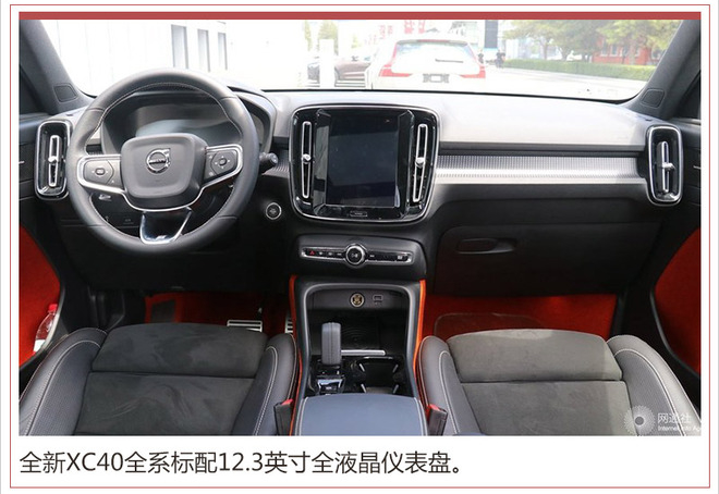 内饰方面,XC40配备12.3英寸液晶仪表盘和9英寸液晶触摸屏,搭载Volvo On