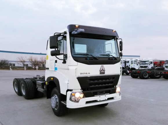 该车型搭载中国重汽自制发动机;装配HW19710变速箱,HF9吨前轴,HC16吨双级减速驱动桥;装配进口ZF系列转向器;搭载V7G驾驶室,装配NANO电器控制系统,英文仪表,量身定制单冷空调系统。