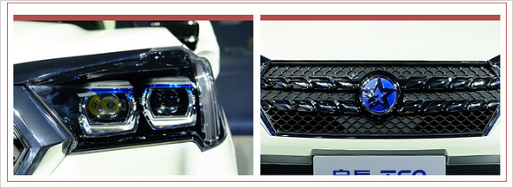 外观方面,新车前脸配备六边形进气格栅,格栅中央横幅装饰造型别致。两侧LED头灯组内部采用蓝色元素点缀,十分精致。下方保险杠造型棱角分明,且配有竖置式LED灯带,辨识度较高。