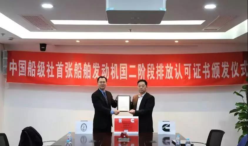 康明斯获批全国首份船舶发动机第二阶段排放认可证书