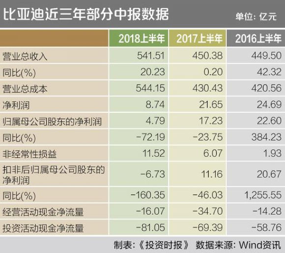 比亚迪年中扣非净利大挫160%