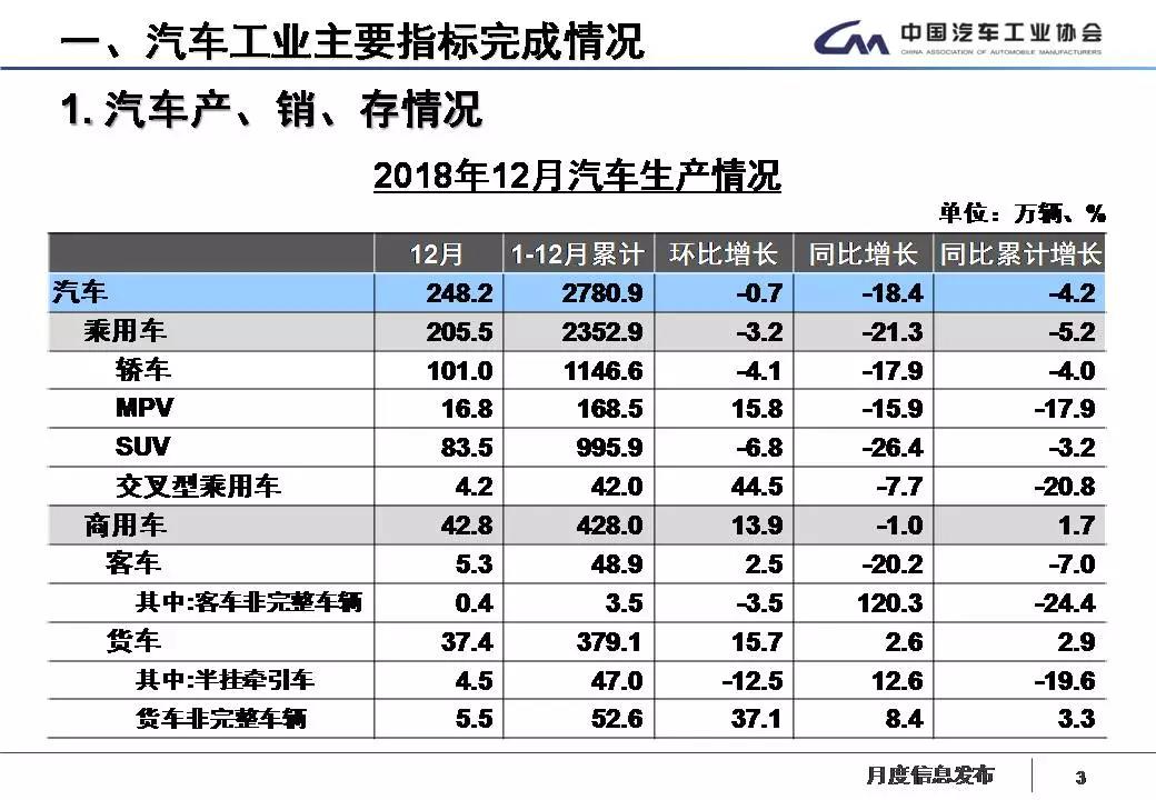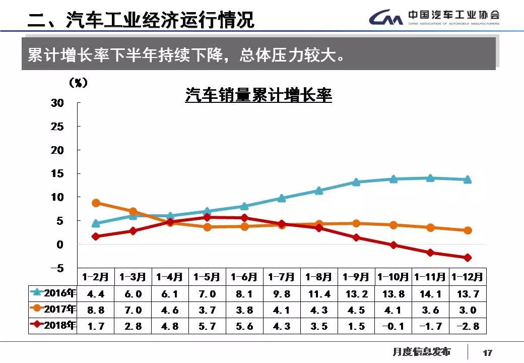 上半年,除2月份外,其余月份销量均高于上年同期。下半年,汽车市场连续出现负增长,全年增速下降至2.8%。累计增长率下半年持续下降,总体压力较大。