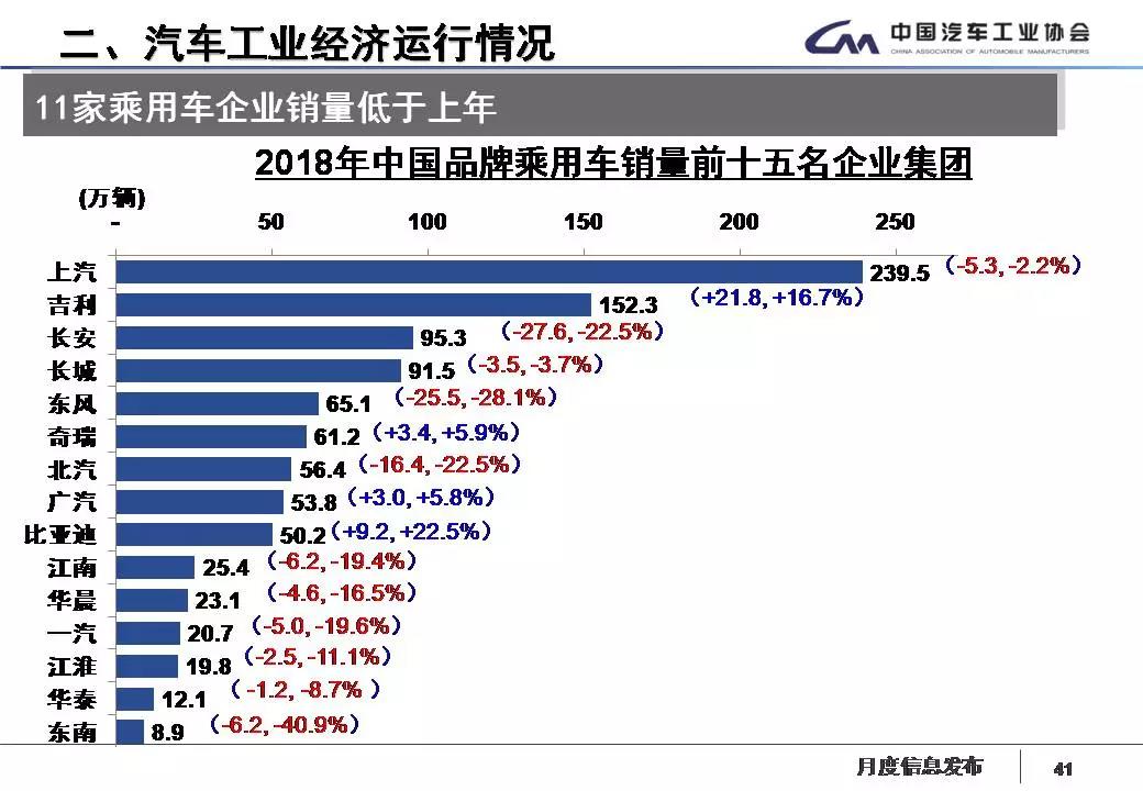 2018年,汽车销量排名前十位的企业集团销量合计为2503.6万辆,比上年同期下降2.1%,降幅低于行业。占汽车销售总量的89.2%,比上年同期提高0.6个百分点。