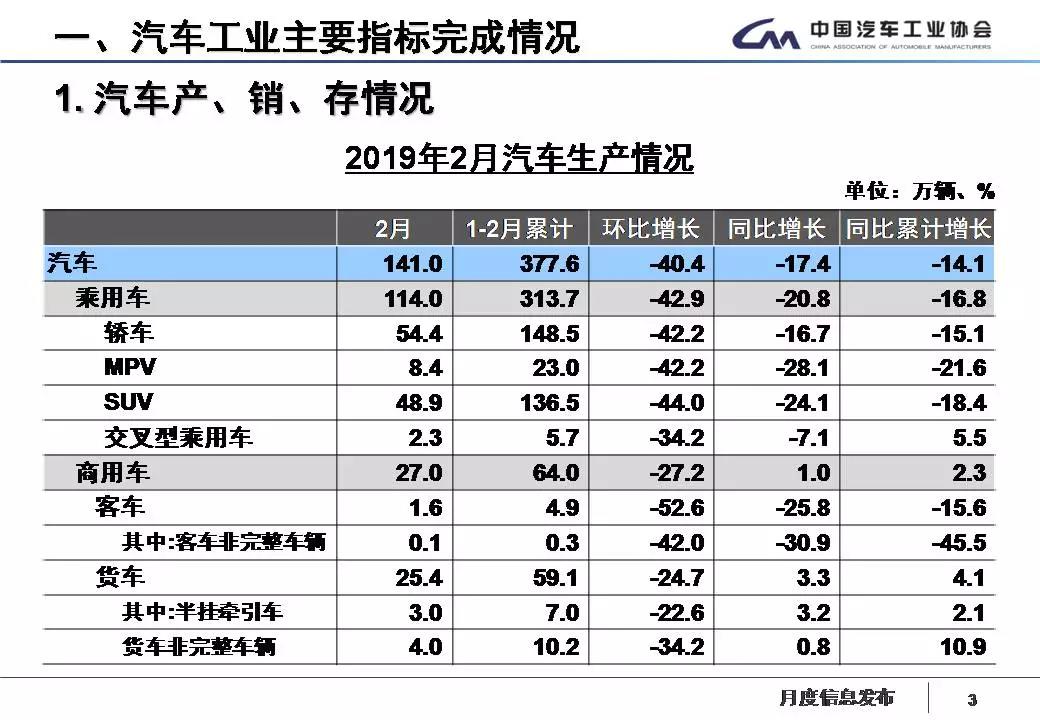 1-2月,汽车产销分别完成377.6万辆和385.2万辆,产销量比上年同期分别下降14.1%和14.9%。