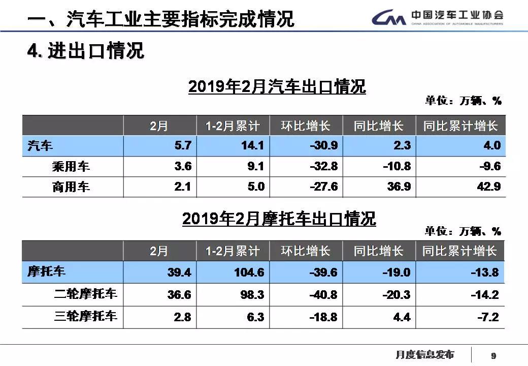 1-2月,汽车企业出口14.1万辆,比同期增长4%,分车型看,乘用车出口9.1万辆,比同期下降9.6%;商用车出口5万辆,比同期增长42.9%。
