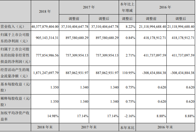 中国重汽(000951)(000951.SZ)发布2018年年度报告,实现营业收入403.78亿元,同比增长8.22%;归属于母公司净利润9.05亿元,同比增长0.84%;归属于上市公司股东的扣除非经常性损益的净利润7.78亿元,同比增长2.71%;