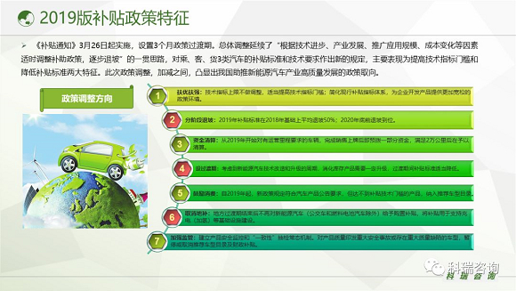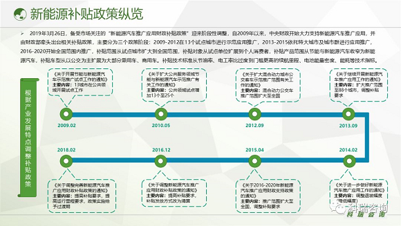 2019年3月26日,备受市场关注的“新能源汽车推广应用财政补贴政策”迎来阶段性调整,自2009年以来,补贴范围从试点城市扩大到全国范围,补贴对象从试点单位扩展到个人消费者,补贴产品范围从节能与新能源汽车收窄为新能源汽车,补贴车型从以公交为主扩展为大部分乘用车、商用车。补贴技术标准从节油率、电工率比过度到门槛更高的续航里程、电池能量密度、能耗等技术指标。
