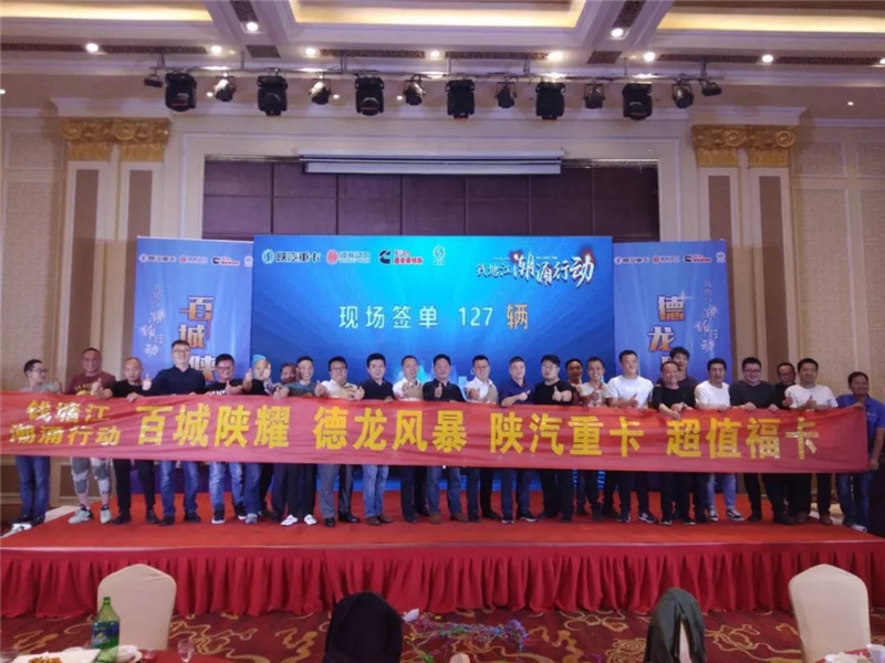 日前,陕重汽销售公司宁波区域总经理付龙飞、潍柴动力浙江办事处主任陈连辉、康明斯办事处主任王鹏及嘉兴新老客户150余人齐聚一堂共同见证陕汽重卡团购会的举行,最终获得现场签约127辆。
