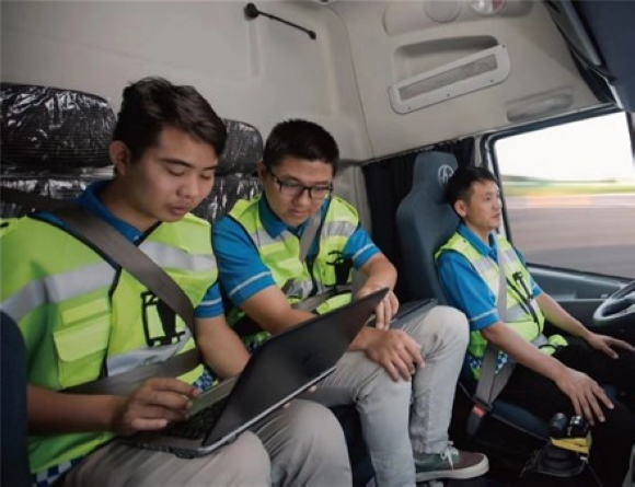 深水港物流园经东海大桥到洋山码头,来回72公里的物流环线,涵盖了普通道路、高速公路、码头、堆场、夜间大交通流量等复杂场景,每年有60余天还要经受东海大桥上7级以上大风的“考验”,前阵子台风登陆,桥面风速超过10级,车辆依然能够保持车道直线行驶。融合了AI人工智能、5G、V2X车联通讯等先进技术的上汽智能重卡,获得了上海市智能网联汽车开放道路测试牌照,成功实现在港区特定场景下的L4级自动驾驶、厘米级定位、与自动化港机设备的交互以及东海大桥队列行驶,为港口运输客户提供更智能、更安全、更高效、更环保的集装箱转运方案。